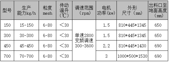 粉碎的顆粒大小,由篩網的孔徑、回轉刀與篩網面的間距以及轉速等來調節。